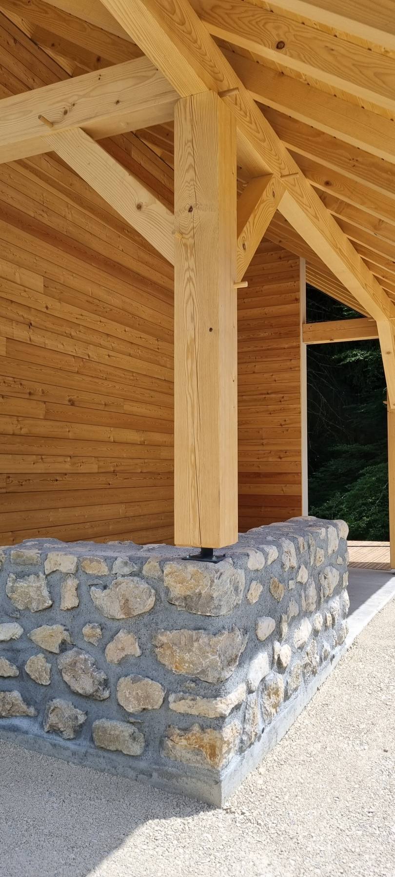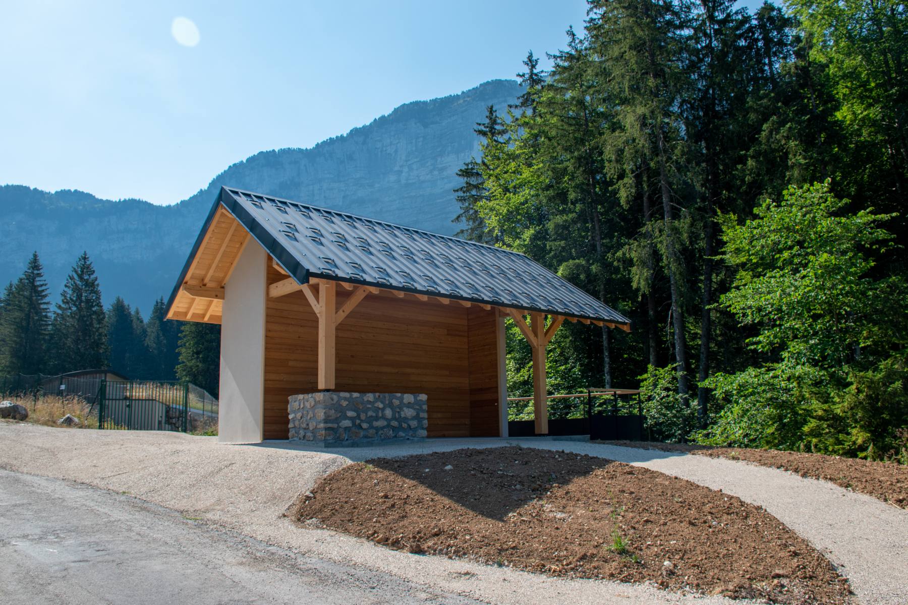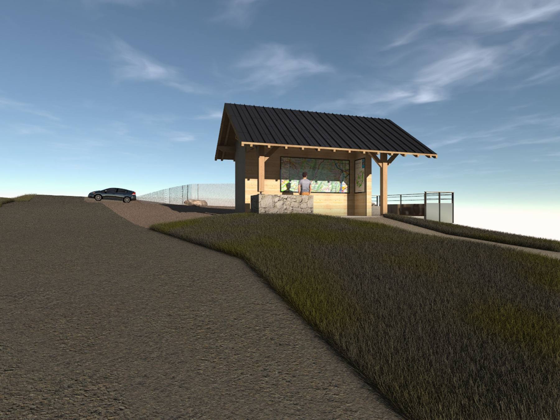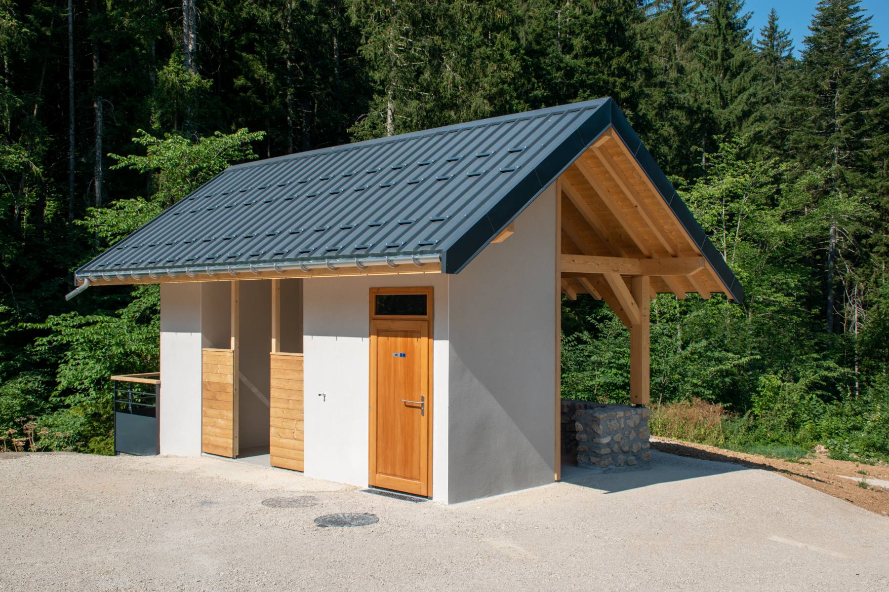 Le projet consiste en la construction d'un bâtiment public d'information, comprenant des sanitaires et un local à ordures. Il s'inscrit comme équipement d'intérêt collectif et public. Le volume « information » est ouvert, contrairement aux volumes sanitaires et ordures qui sont clos et couverts. Cet espace a été pensé pour accueillir le public lors de son arrivée sur ce site très touristique, le renseigner grâce aux différents panneaux et cartes, et l'abriter en cas d'intempéries. L'architecture du projet correspond aux codes de l'architecture locale avec un emploi de matériaux traditionnels qualitatifs.
