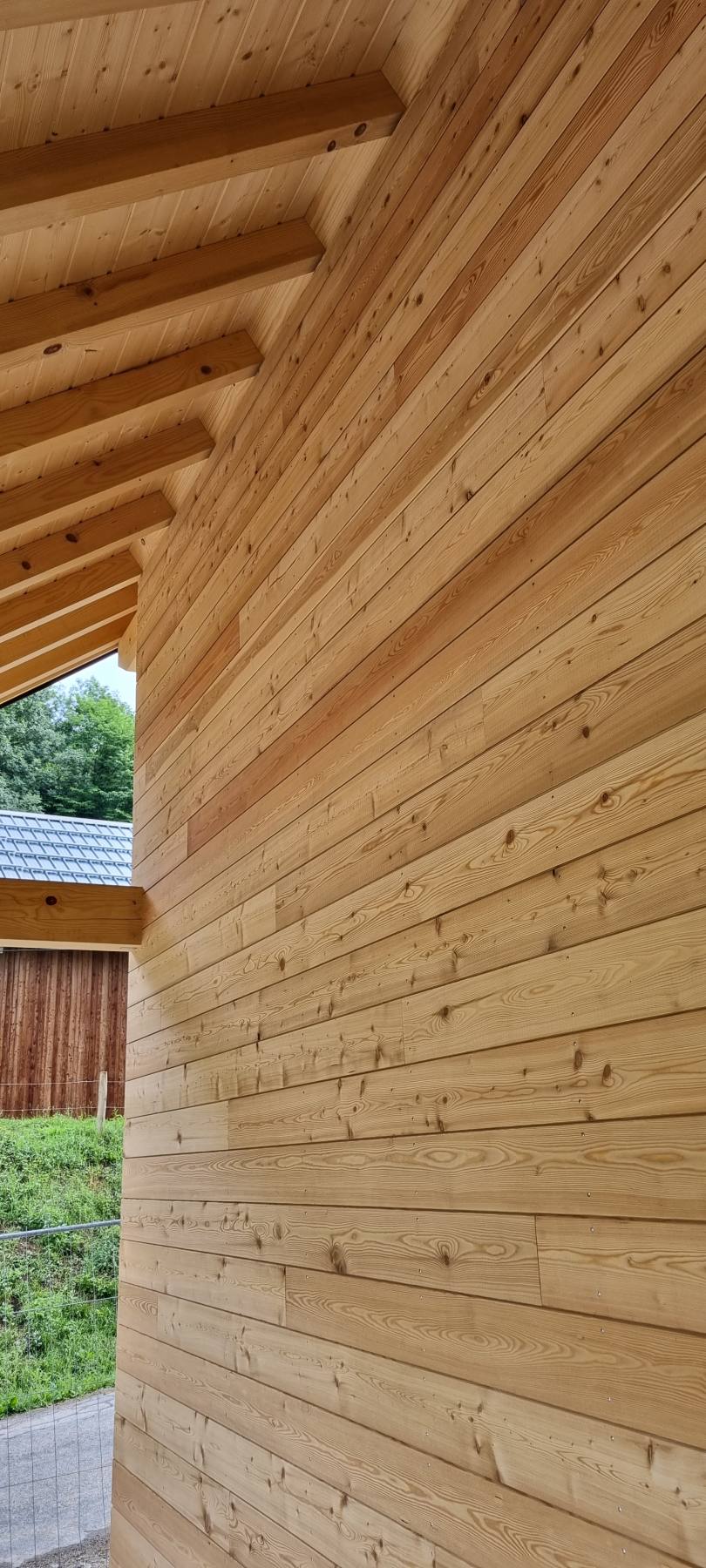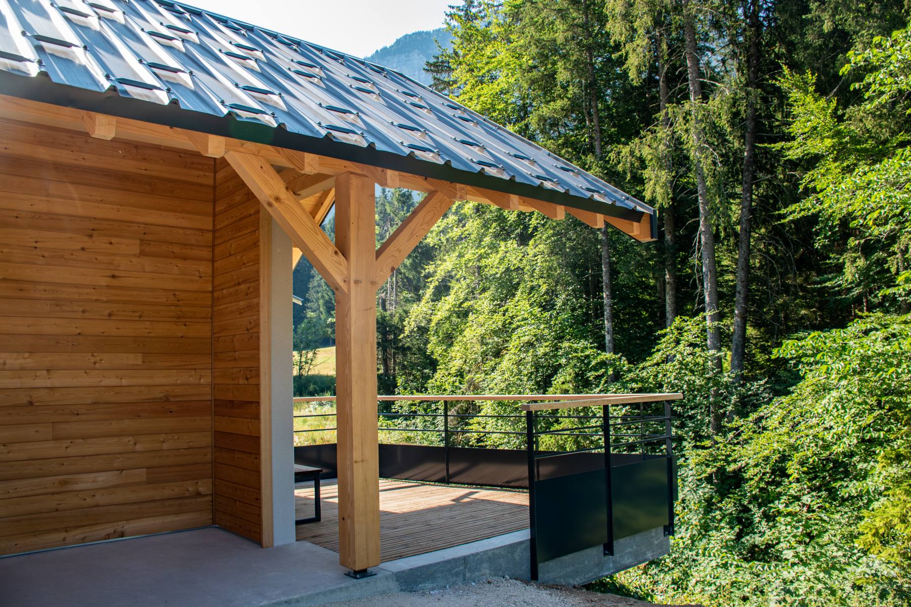 Les façades sont traitées principalement avec du bardage bois vertical de teinte naturelle, et le soubassement est traité en maçonnerie enduite de teinte type pierre naturelle, afin d'intégrer au mieux le bâti à son environnement.