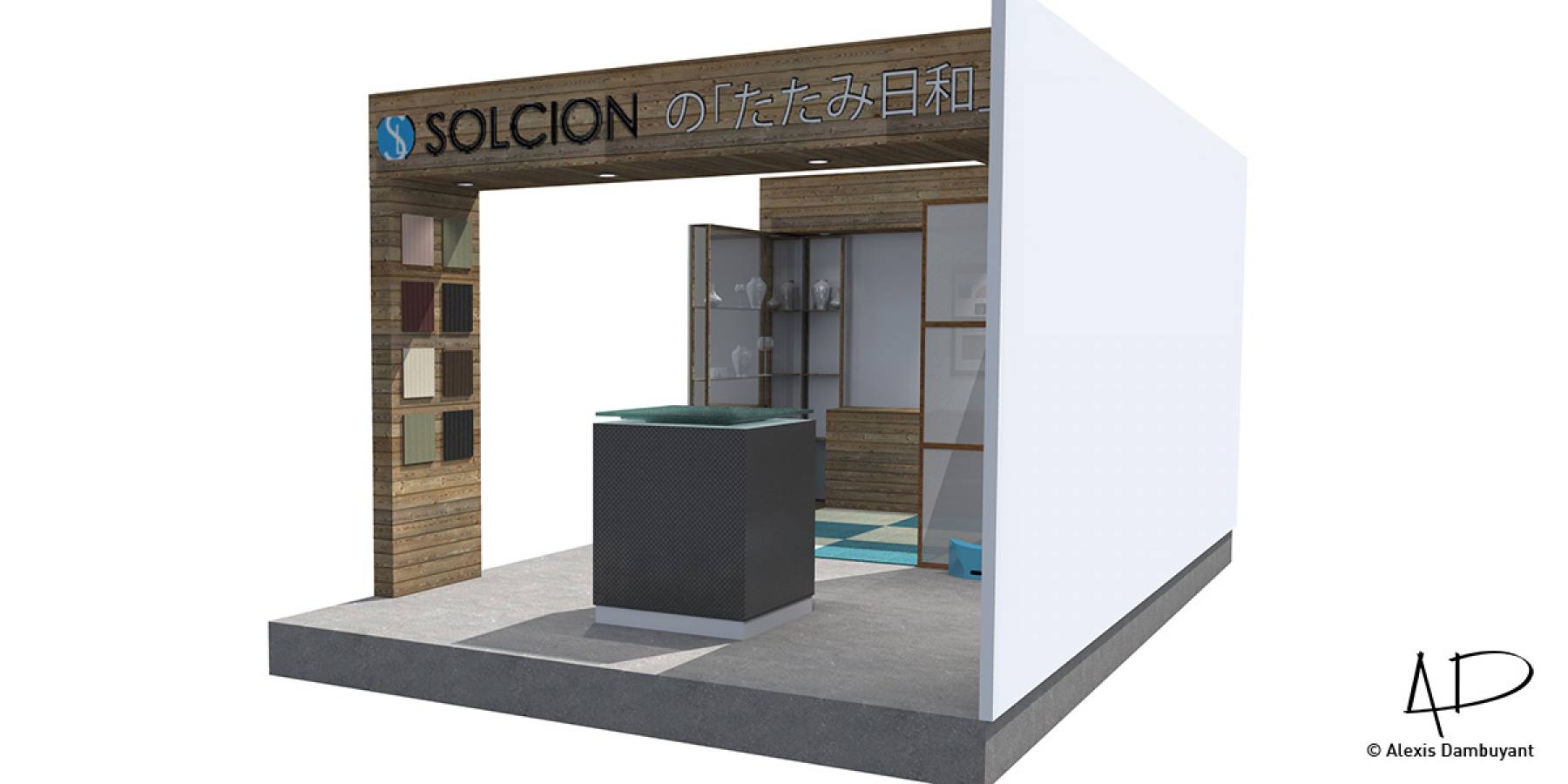 Le projet consiste en la conception d’un stand pour une entreprise Japonaise (SOLCION) au Salon de Design, décoration et meubles « Maison & Objet » de Paris. La conception est basée sur une idée d’espace « Japonisant » sans pour autant tomber dans une caricature culturelle et architecturale. Certains codes ont été réinterprétés et un volume à l’identité assumée a fini par émerger pour créer le stand final.