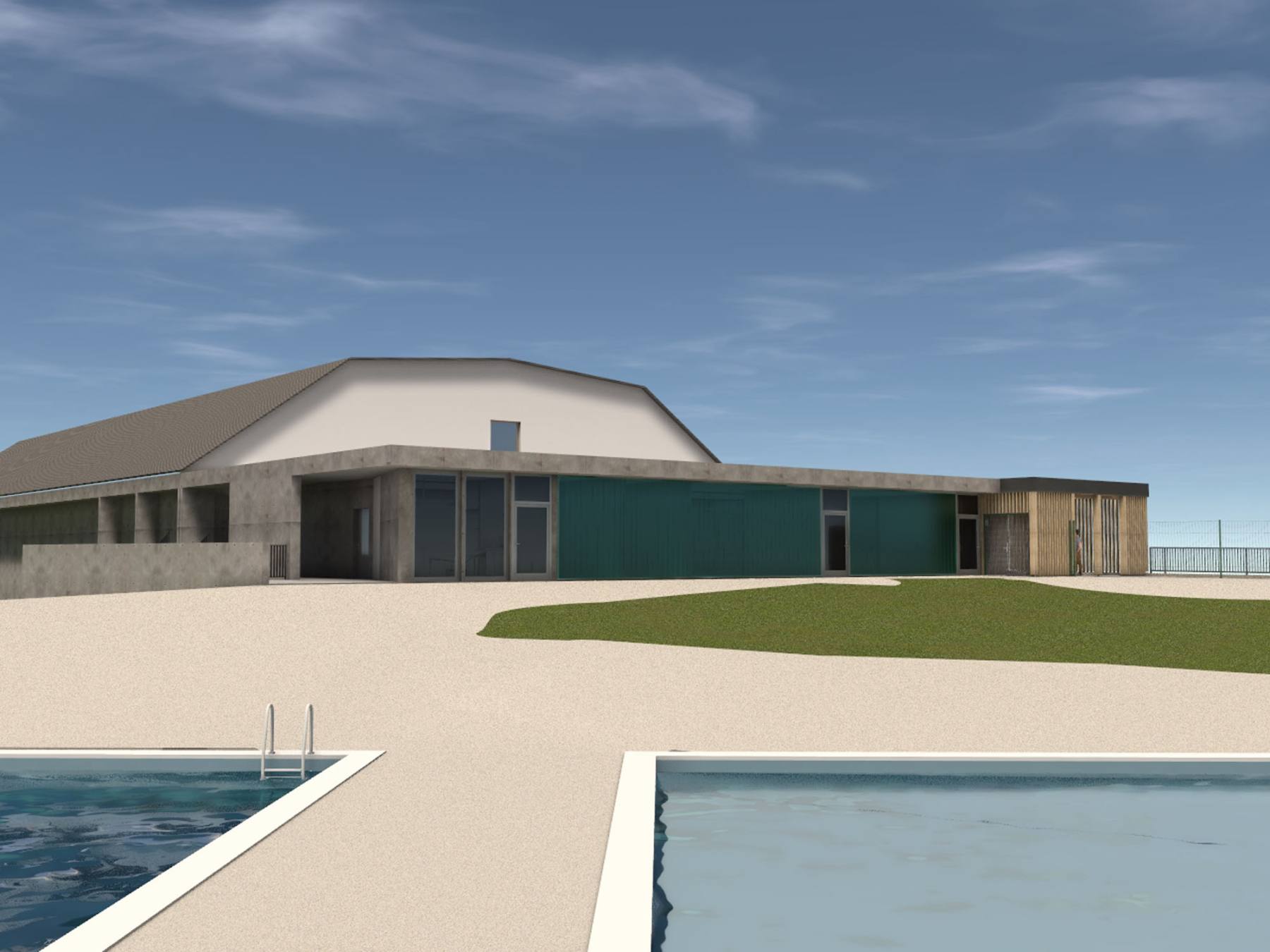Le projet consiste en la création d'un nouvel accueil pour la Piscine Municipale de Saint Laurent du Pont. Il s'agit d'une extension du bâtiment existant composé d'un volume fermé abritant la partie "Accueil" et d'un volume semi-ouvert marquant l'entrée. Un espace de stockage est également intégré dans le volume existant. L'ensemble des accès et des abords existants sont inchangés. Les cheminements piétons PMR sont conservés comme à l'existant.