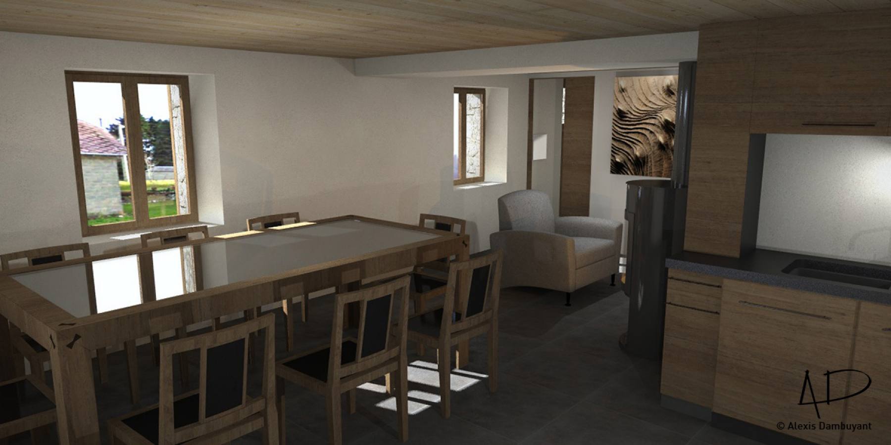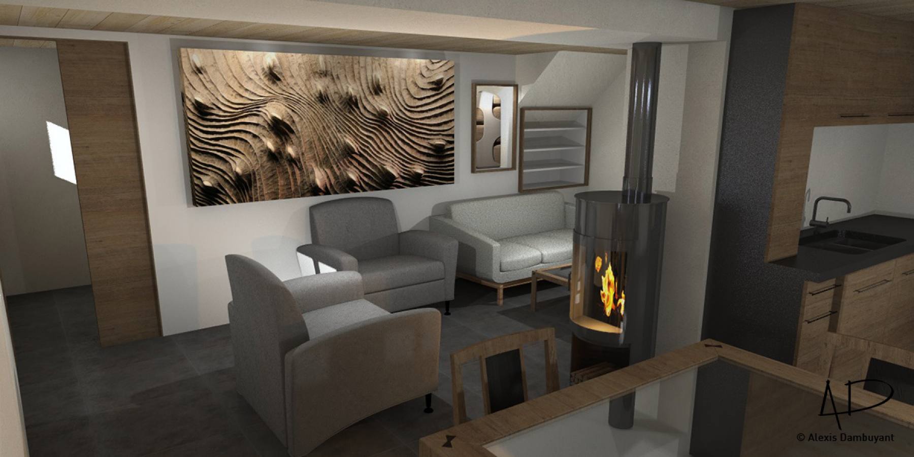 Le projet consiste en la transformation d’un logement existant en meublé de tourisme pour 8 personnes. L’intérieur sera réhabilité et transformé de manière a accueillir un meublé de tourisme de type « Gîte ». L’ambiance recherchée se base sur un équilibre d’un espace de type ambiance « chalet montagne » et d’éléments plus « contemporains » rapportés avec le mobilier et l’éclairage des volumes. Un travail important est effectué sur l’architecture intérieure, les matériaux employés afin de fournir une grande qualité des espaces aux futurs utilisateurs. Le client étant un sculpteur, quelques pièces seront exposées et mises en valeur dans l’ensemble du gîte.