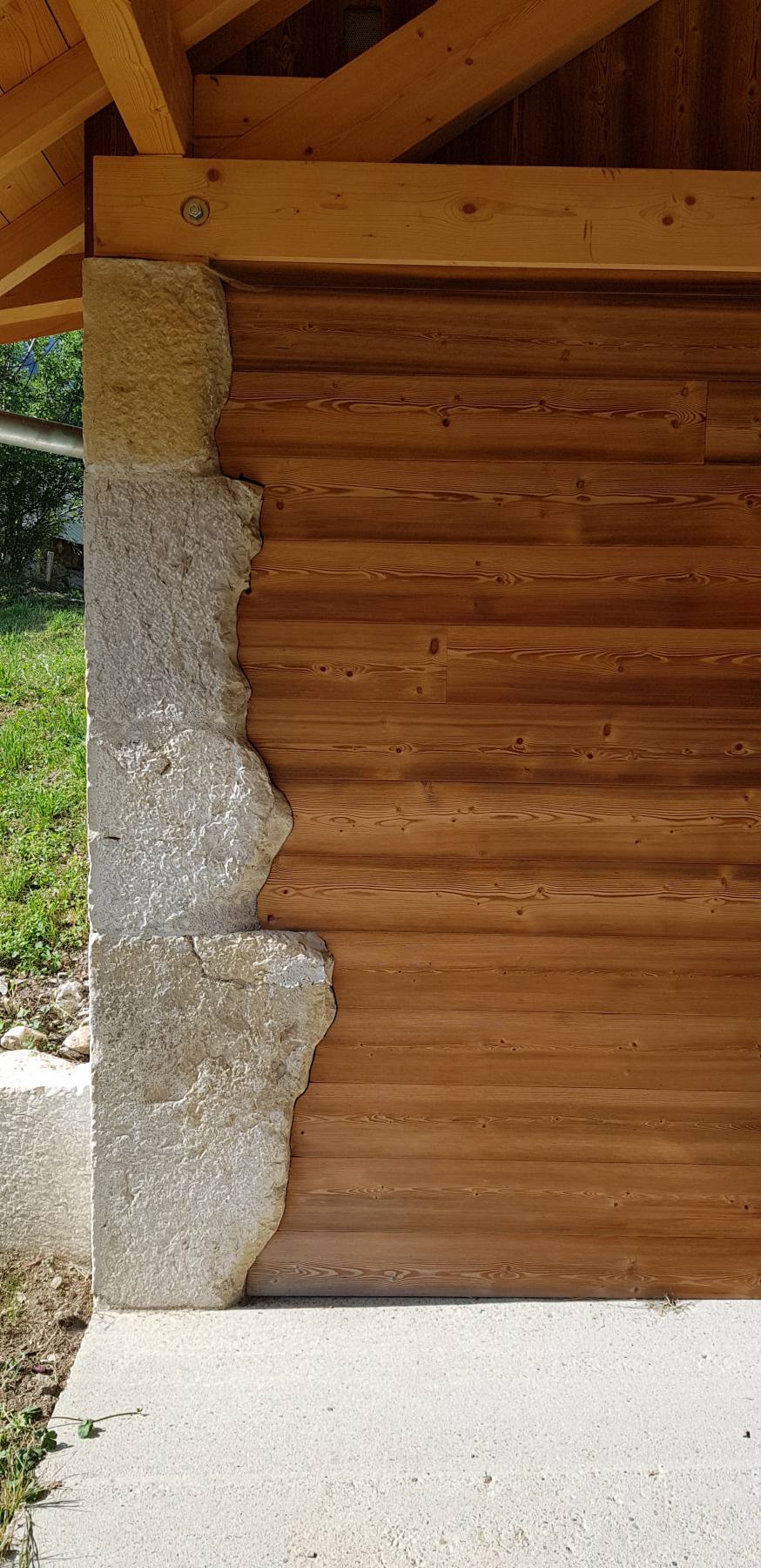 Le volume extérieur sera quand à lui rénové pour retrouver une architecture locale et une remise en valeur des matériaux nobles. L’enduit actuel sera supprimé pour retrouver la pierre brute. Les jointures seront retravaillées avec un enduit à la chaux traditionnelle. Un bardage est également prévu en partie haute du bâtiment pour rapporter une touche de bois ainsi qu’un visuel traditionnel plus poussé. Une terrasse couverte ainsi qu’un espace clos est également créé en partie Sud-Ouest. Un jeu de pleins et vides permet d’amener une nouvelle esthétique au bâtiment ainsi qu’un usage supplémentaire de l’espace extérieur.