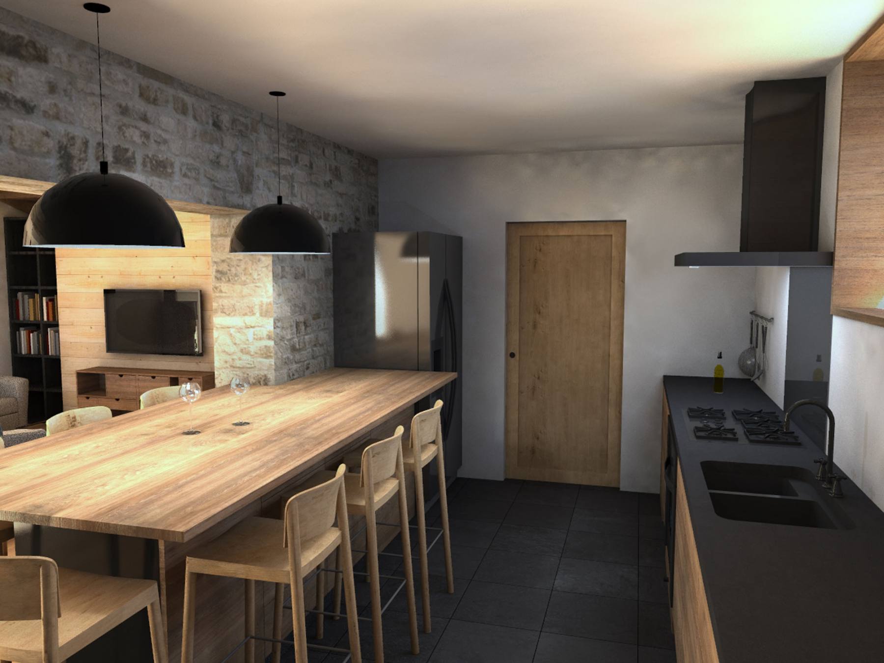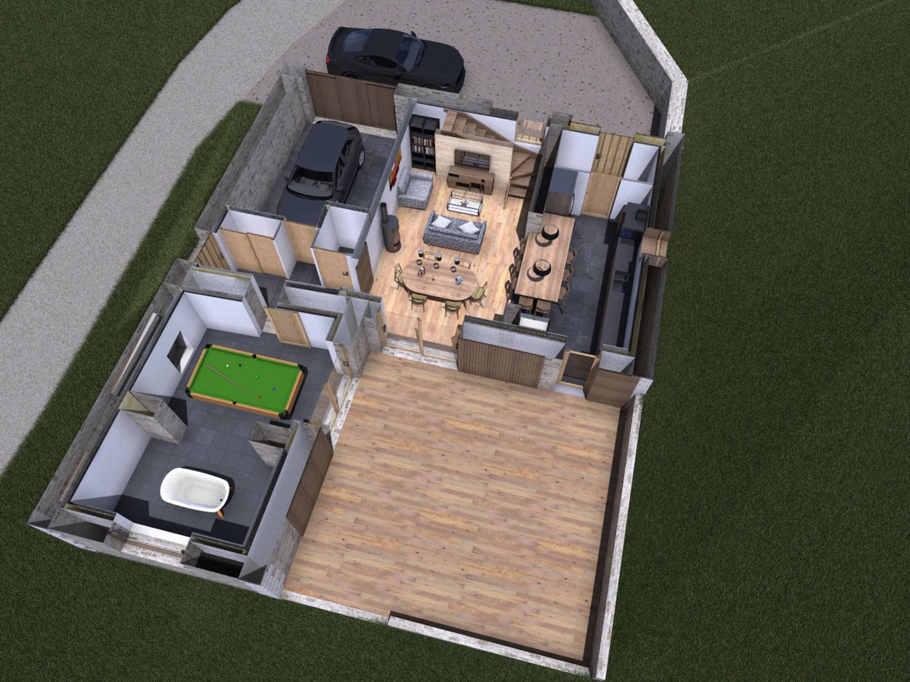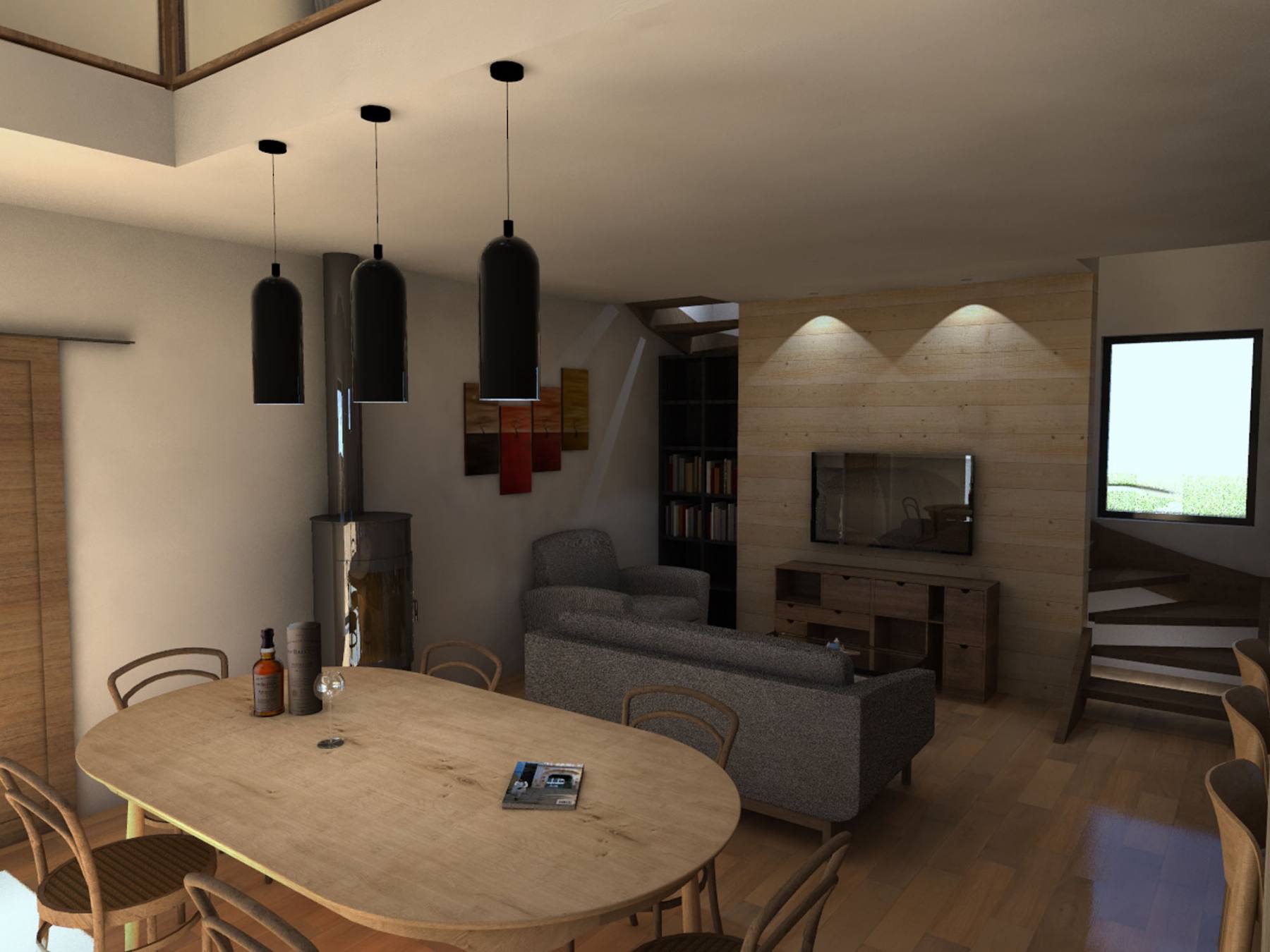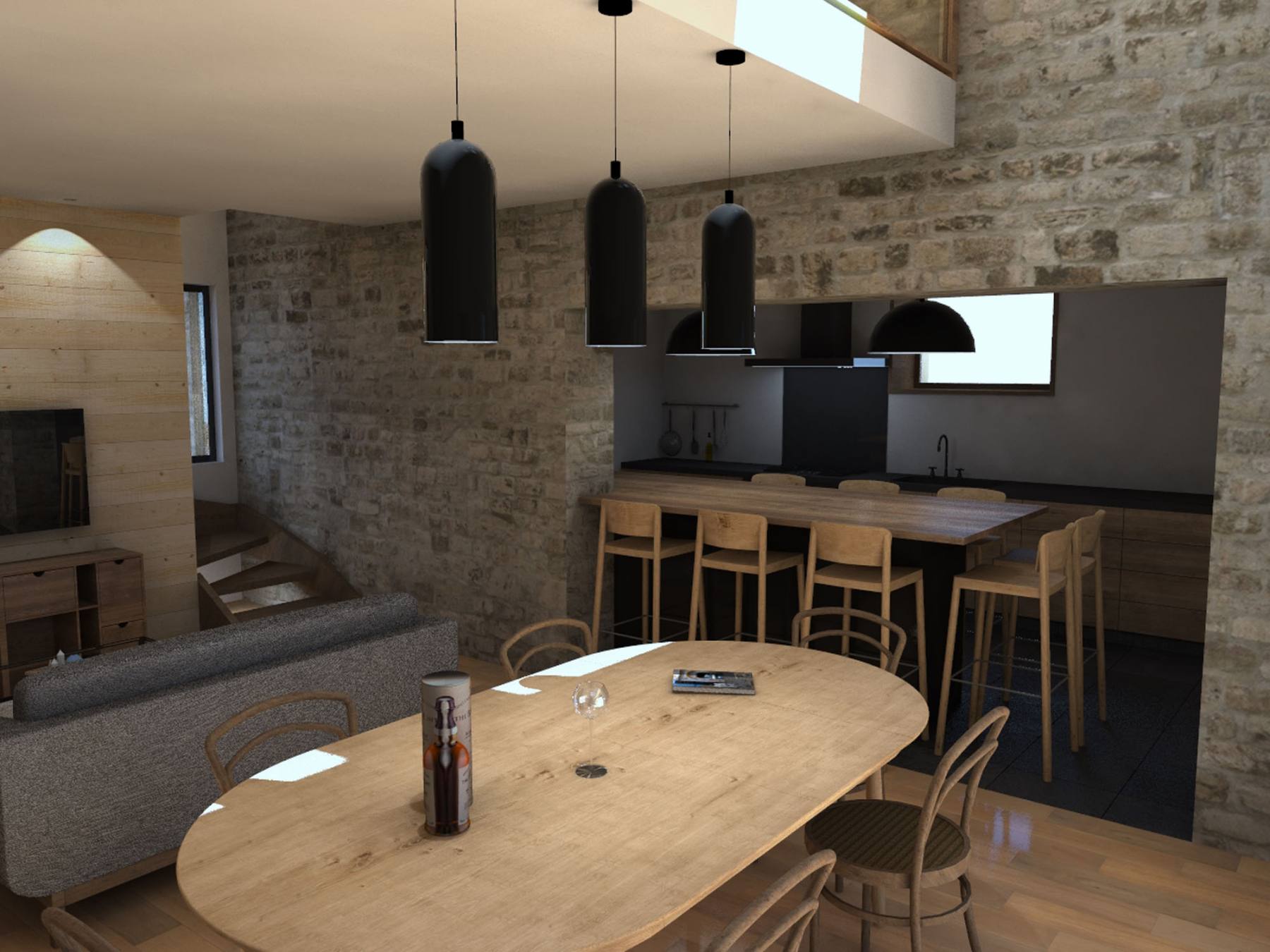 Le projet consiste en la transformation et la réhabilitation d'un bâtiment existant agricole en une habitation. L'ensemble du projet s'effectue dans le volume existant, sans extension ni modification de volume (hors menuiseries et reprises de façades) et sans ajout de surface plancher supplémentaire. L'entrée, située côté Ouest, est positionnée légèrement plus haut que le terrain naturel qui suit une pente le long de la façade. Un remblai ponctuel et de faible importance sera mis en place le long de la façade afin de pouvoir accéder à la porte d'entrée. La zone terrasse a été traitée avec un léger décaissement pour permettre de créer une terrasse en bois à double niveau.