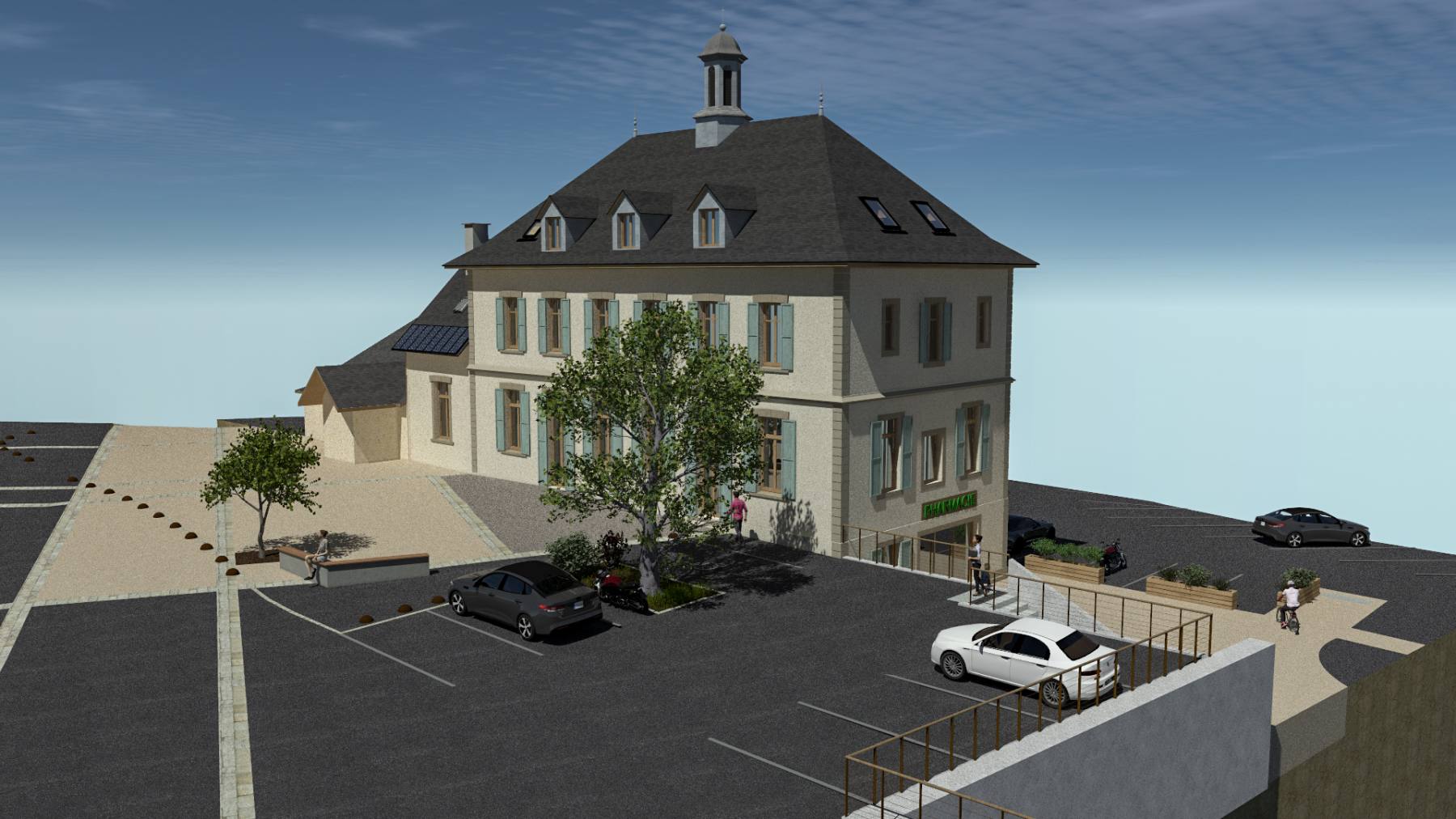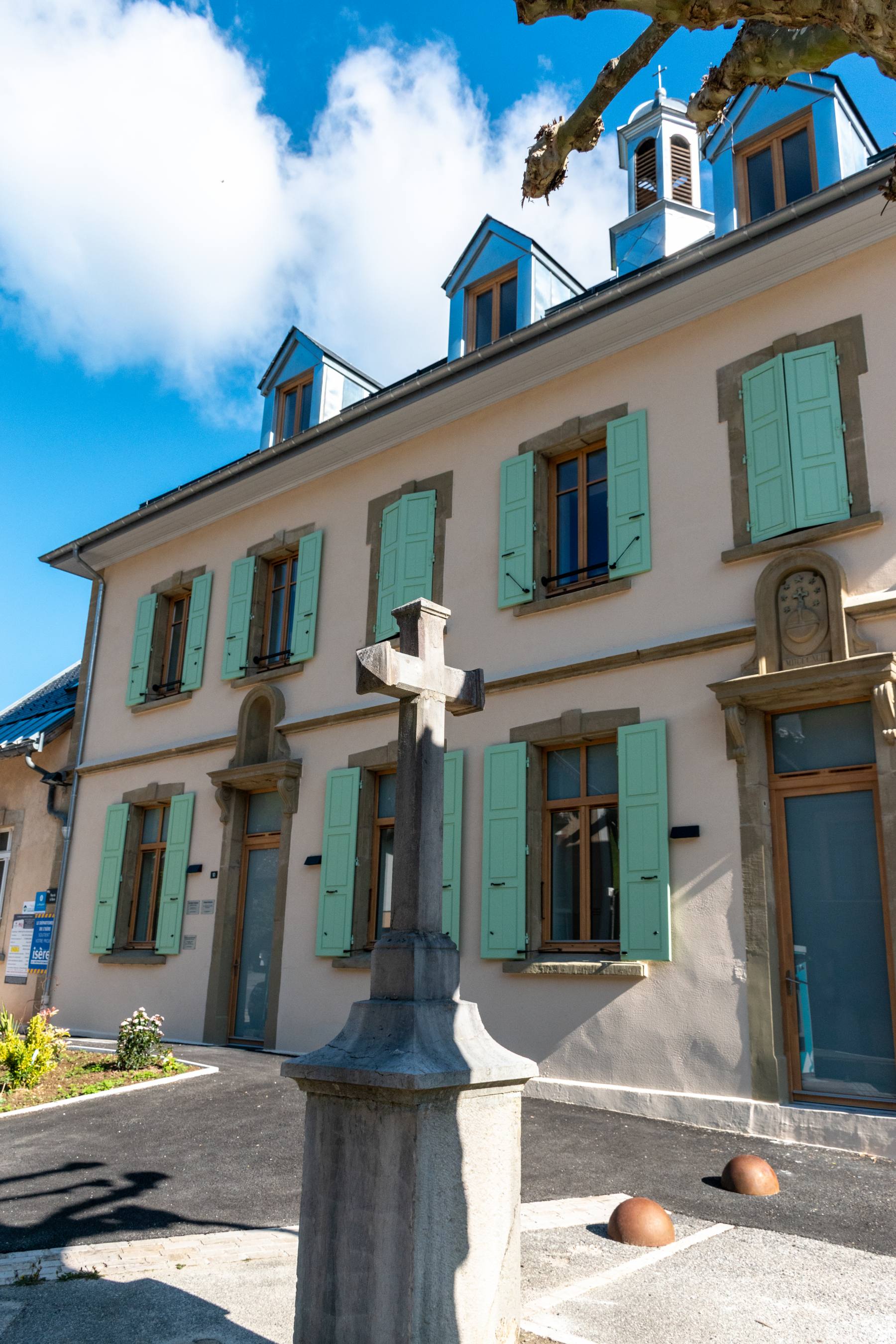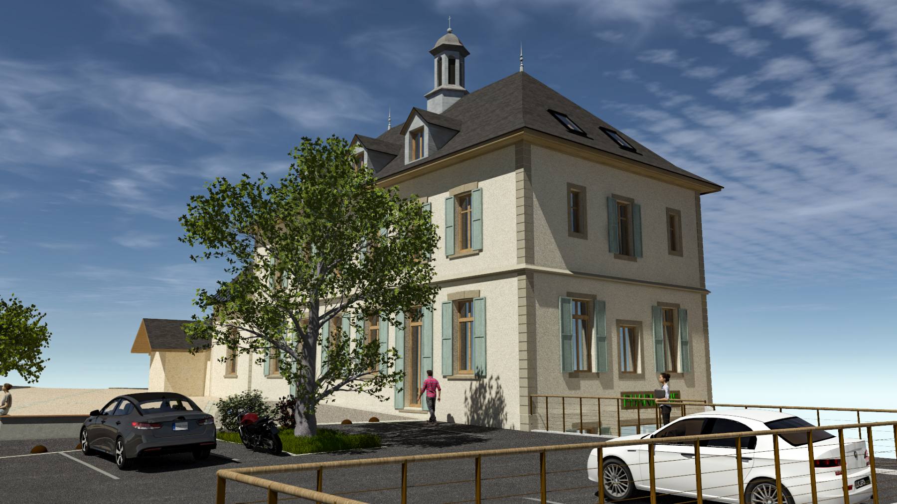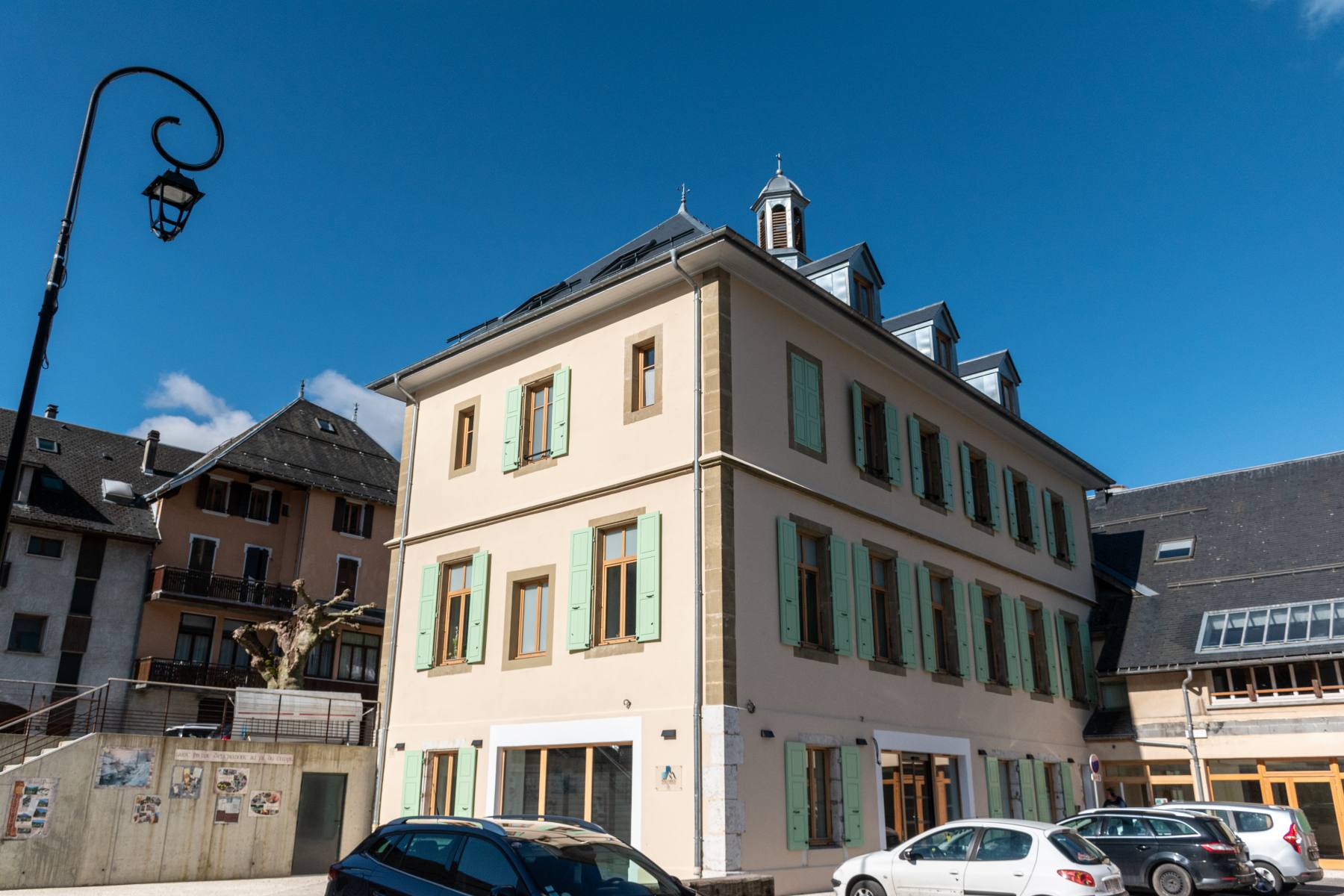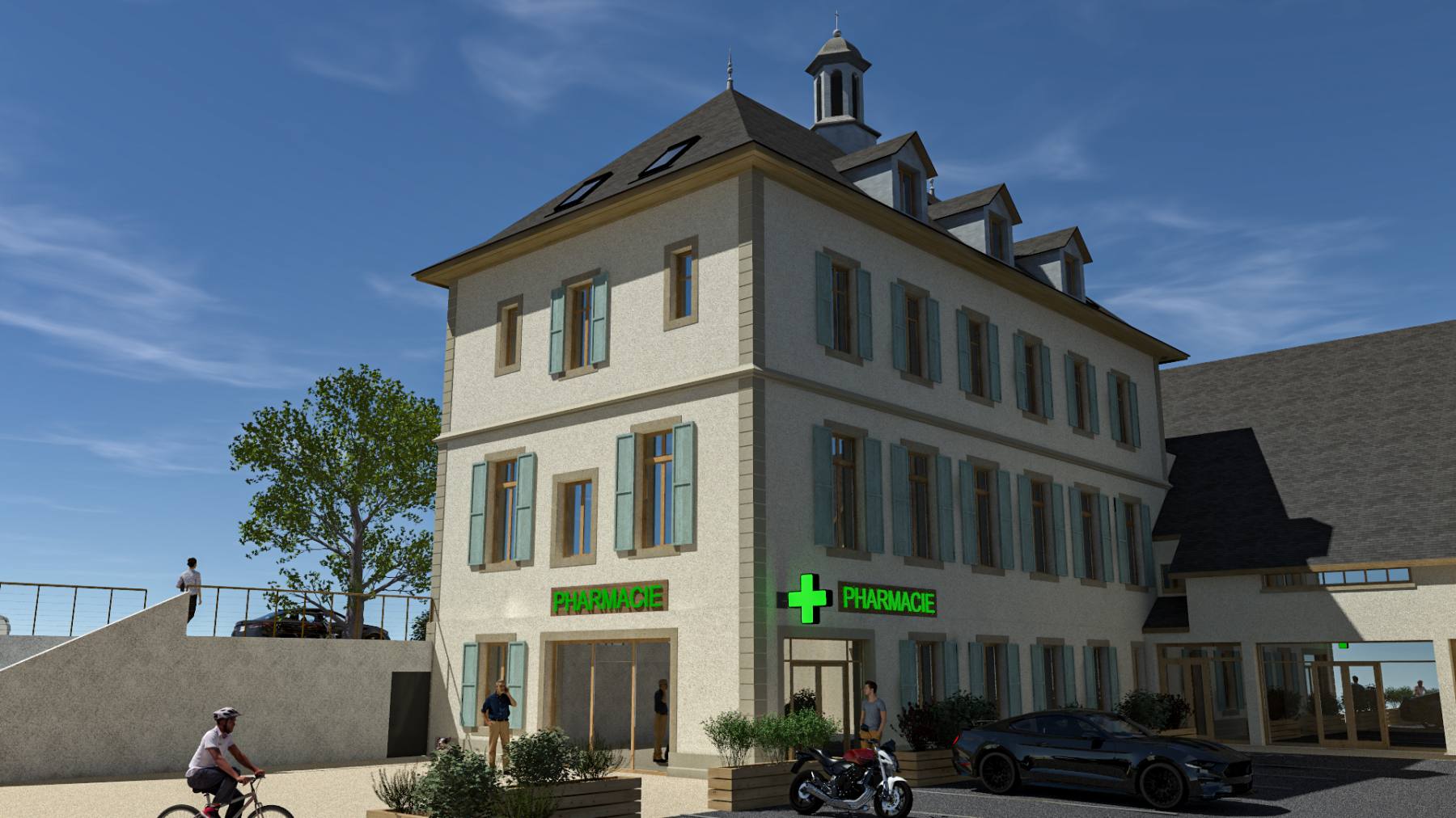 Le projet consiste en la réhabilitation d'un bâtiment existant permettant de créer des locaux médicaux, des bureaux et 5 logements sociaux au bénéfice d’un ESAT et de ses salariés. Le volume existant est inchangé hormis les fenêtres de toit, la création de 2 portes en R+1 et la création de vitrines en partie RDC du bâtiment pour la partie commerce (pharmacie). Les travaux principaux en façades concernent une reprise des enduits, un changement des menuiseries et des volets (forme à l'identique).